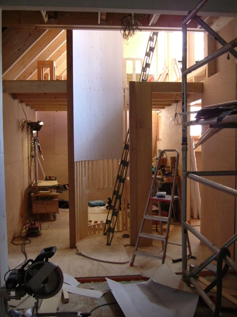 De isolatie zal ingeblazen hout wol zijn. De gevel komt tot stand met houtvezelplaat voorzien van een kalkstuc. De binnenwand afwerking zal voornamelijk leemstuc zijn.