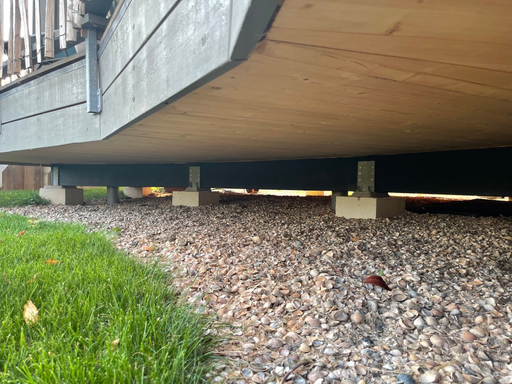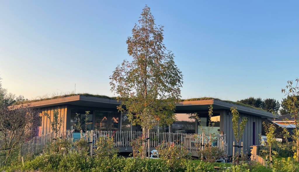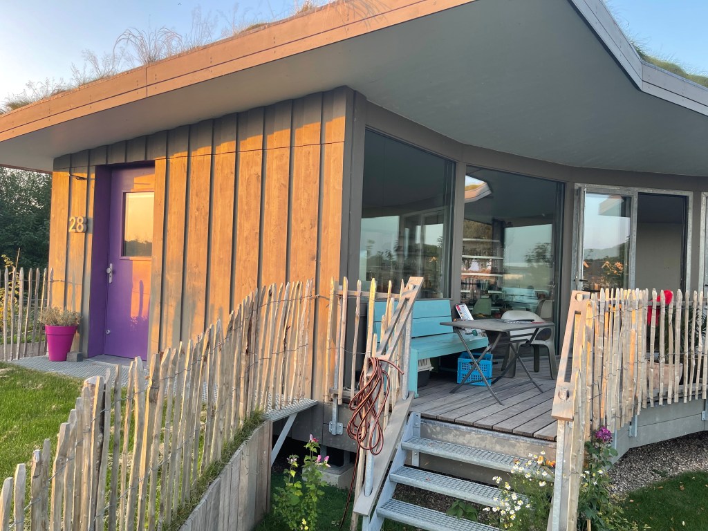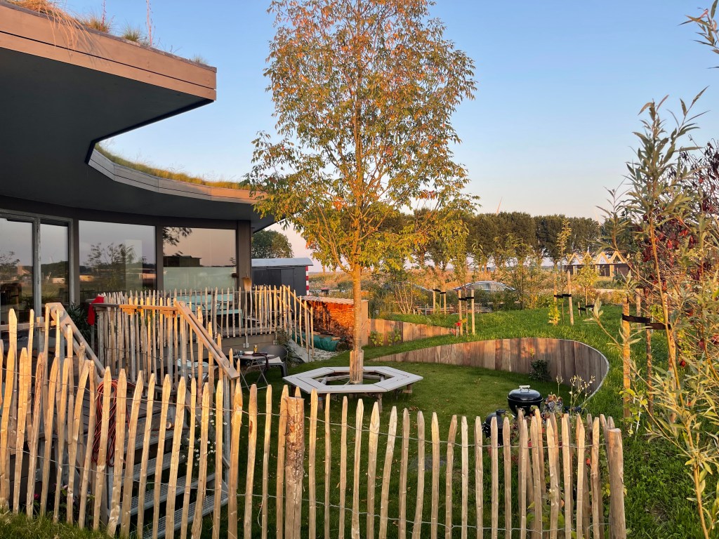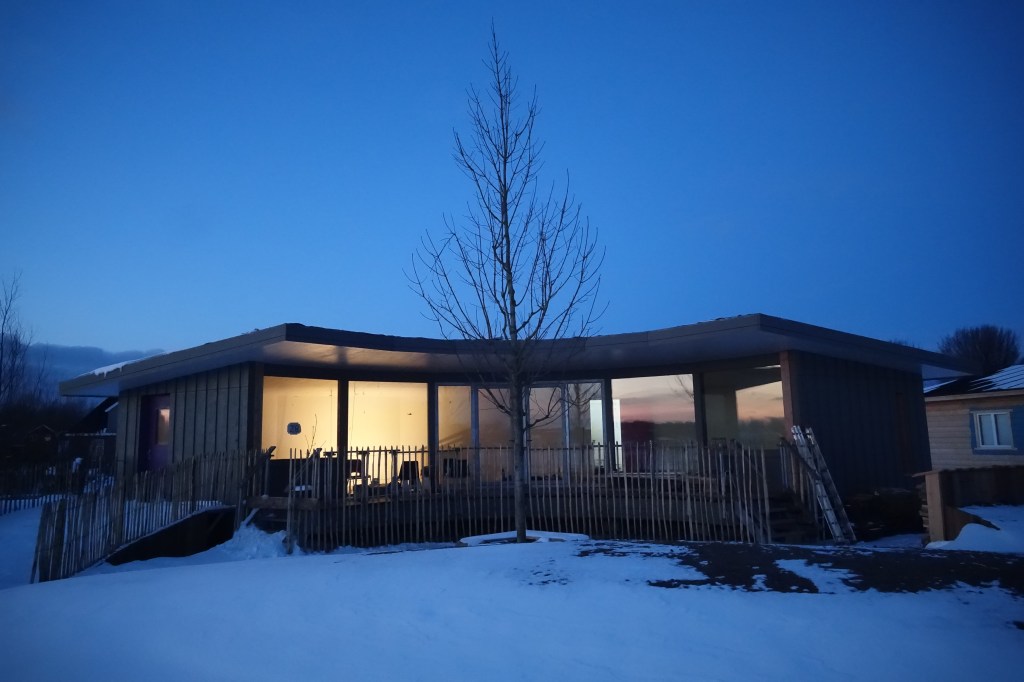 De woning staat 60 cm boven het maaiveld op 12 stalen voeten.