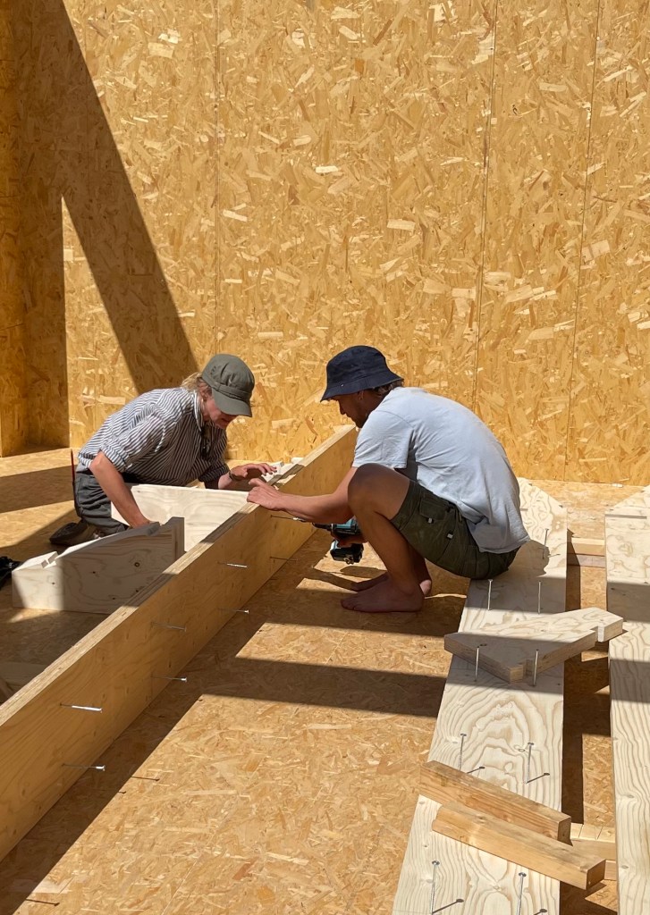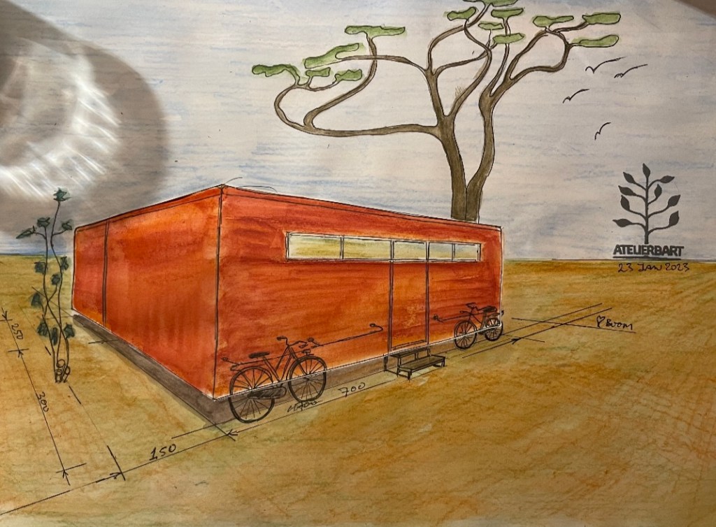 Het ontwerp , de werkvoorbereiding / begroting en de bouw wordt gerealiseerd door de opdrachtgever / zelfbouwer in samenwerking met leerling bouwers onder begeleiding van Bart Verschoor.